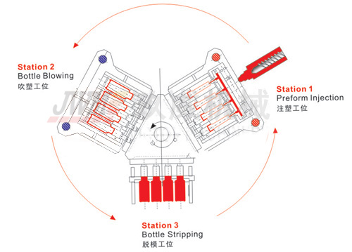 注射吹塑成型技術特點:
